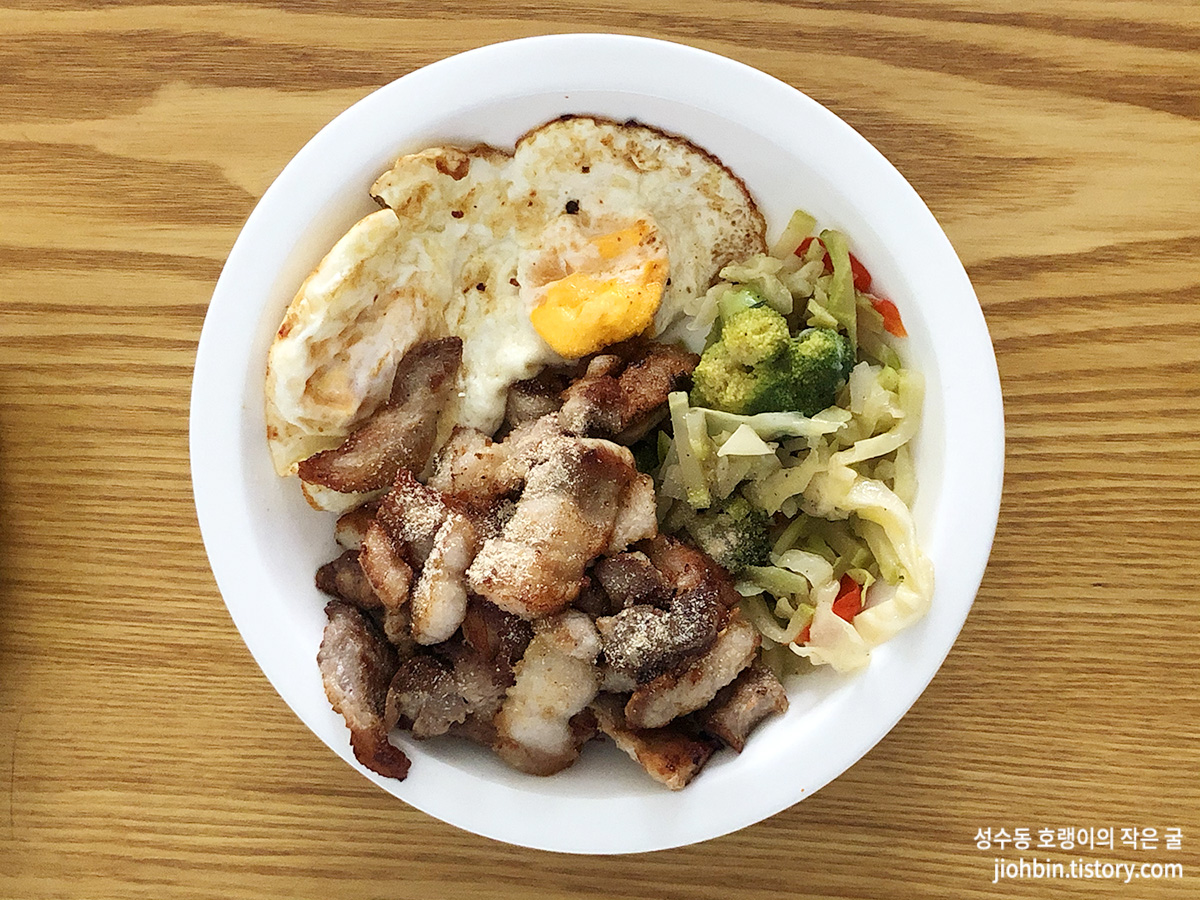 하지만 그 이후로 얘기해 보자면- 저는 오히려 식비가 줄었습니다. 글 시작에 적어 둔 것 처럼, 모두에게 해당될 수 없는 개인적인 의견이지만 저는 그랬습니다. 식사도 밖에서 해결하거나 배달음식을 시켜먹으면 한 끼당 저렴해도 7천원~1만5천원 정도의 돈은 들기 마련이었습니다. 하지만 저탄고지 식단을 하며 제가 직접 만들어 먹는 고기, 계란, 채소로 주식을 바꾸니 한 끼당 적게는 2~3천 원 내외 많아도 8천 원을 넘지 않을 때가 보통이었습니다. 고기가 질려서 계란에 채소, 약간의 소시지 정도로 배를 채울 때는 정말 저렴하게 한 끼를 해결 한 셈이 됐죠.