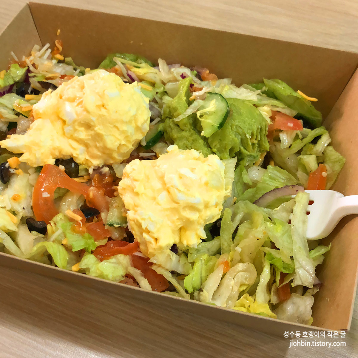햄버거와 서브웨이가 있다면 당연히 서브웨이로 가는 게 키토식을 지키는 쉽고 편한 방법! 포장해서 집에서 먹을 경우엔 계란 프라이 두세 개만 추가해도 더 든든하고 기름기름하게 먹을 수 있습니다. 요리 1도 하기 싫다! 하시면 감동란 하나 편의점에서 사서 함께 드셔도 좋고요~