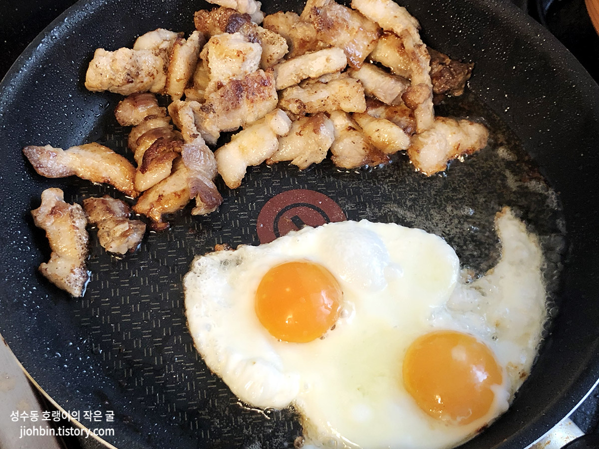 거의 주식으로 먹는 삼겹살은 다음날 오전, 가볍고 산뜻하게 아침으로 먹어줍니다. 삼겹살 250~300g 정도와 달걀 2~3개 정도면 부족한 듯 가벼운 브런치 정도로 나쁘지 않습니다. 하하. 이마트 BBQ 바비큐 모둠 삼겹살 역시 잡내 없이 쫄깃쫄깃 맛있네요! 두께감도 적당해서 딱 좋았습니다.