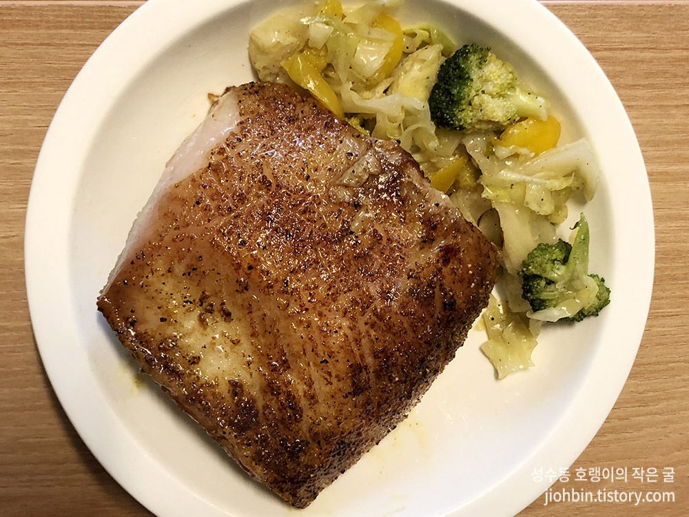 1kg 패키지에서 덜어먹고 남은 고기에 미리 밑간을 해 둡니다. 다음날 더 맛있는 항정살을 먹기 위해서 말이죠. 항정살은 돼지고기의 다른 부위에 비해 돼지고기 냄새가 덜 나는 것 같습니다. 이유까지는 잘 모르겠지만, 삼겹살보다도 덜 나고 더 고소한 맛이 있습니다. 이번처럼 통구이로 먹어도 되고, 보통처럼 길게 썰어 구워 먹어도 좋을 것 같습니다. 저는 한동안 항정살의 매력에서 빠져나가지 못할 것 같습니다.