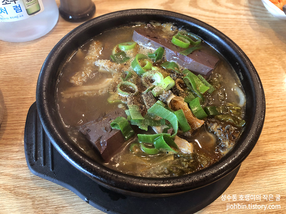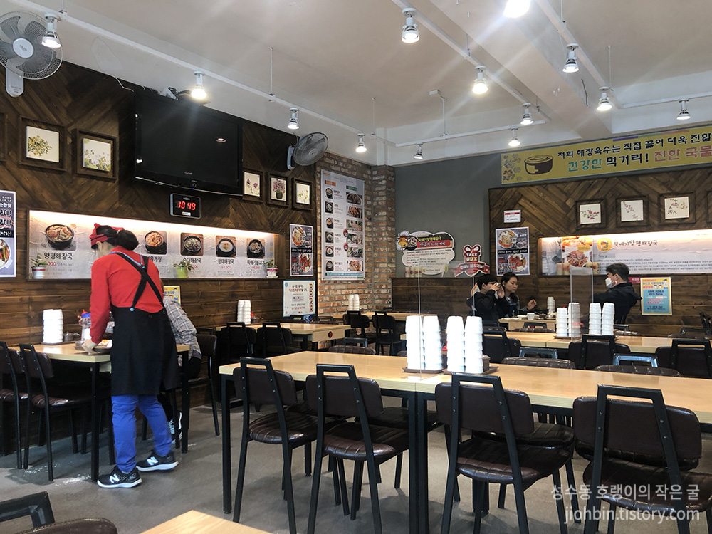 외관사진을 깜빡해서 다음 로드뷰를 통해 가져왔습니다. 해장국집 치고는 꽤 넓은 식당입니다. 1층에 위치하고 있어 오며 가며 찾기 어렵진 않을 것 같습니다. 성수동이 카페거리와 핫플레이스로 유명하지만, 사실 지식산업센터, 오피스, 인쇄공장, 차량 정비 센터 등 다양한 상업시설이 밀집된 공간이기도 합니다. 아마 평일 점심시간에는 주변에 많고 많은 직장인들이 많이 찾는 식당들이 아닐까 싶습니다.