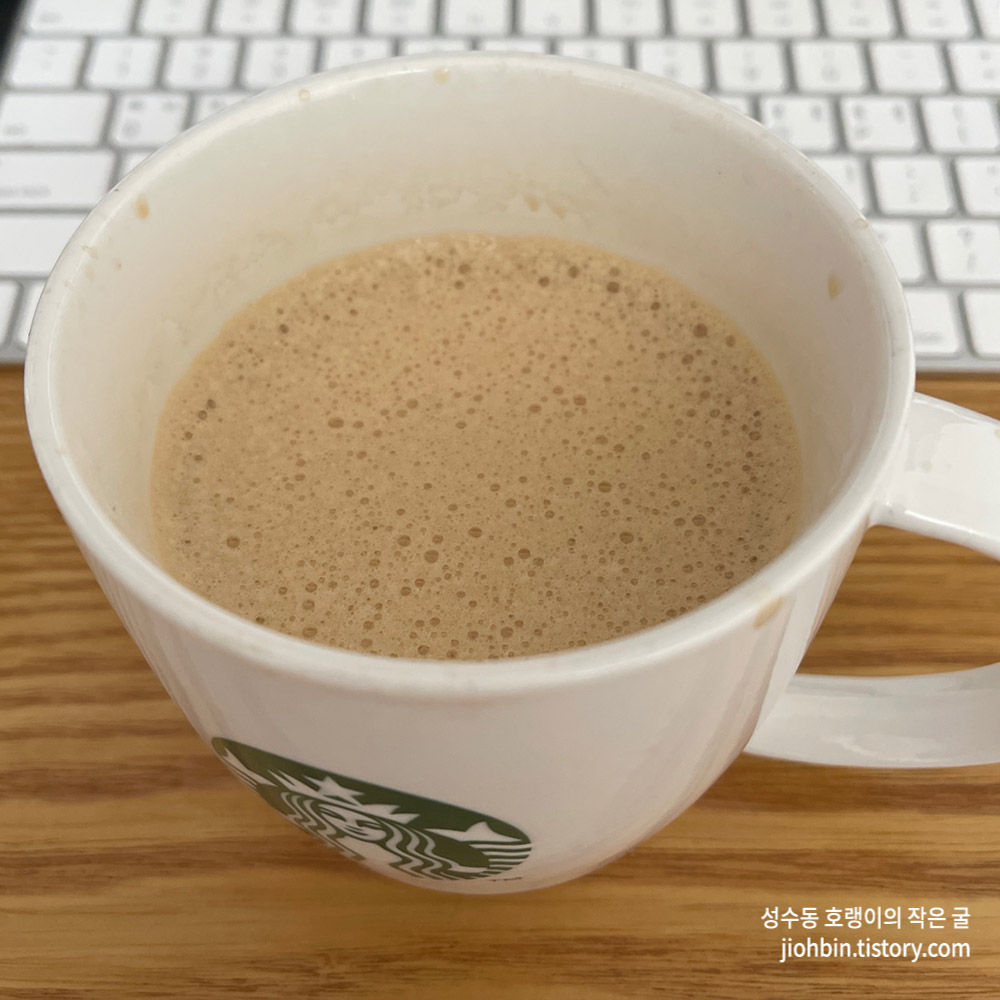 저는 방탄커피를 함께 곁들였습니다. 지방이 풍부한 방탄 커피와 돼지 껍데기를 함께 먹으니 간단한 간식 정도가 아니라, 끼니라고 쳐도 될 만큼 든든한 포만감이 느껴집니다. 다음에는 매콤한 맛도 리뷰하고, 이 돼지 껍데기 과자 콜라겐팝을 활용한 튀김요리들도 소개해 봐야 겠습니다. 제가 처음 저탄고지 식단을 시작할 때 보다 정말 다양한 종류의 저탄수, 저 당질 제품들이 많이 나와서 제품을 소개하는 재미도 있는 것 같습니다. 다음에도 저탄고지 식단에 도움이 될 재료를 들고 찾아오겠습니다!