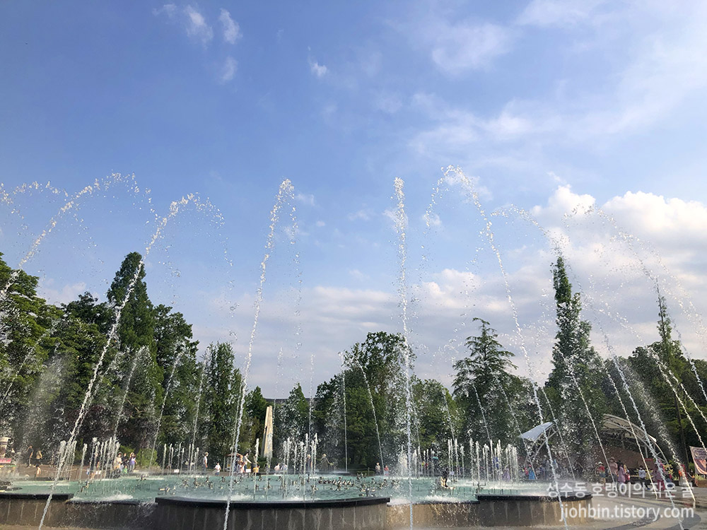 아이스크림을 들고 어린이 대공원을 조금 걸으며 한적하고 아이스크림 먹기에 괜찮은 그늘 자리를 찾았습니다. 오늘 날씨 정말 너무 좋더라고요. 햇살은 뜨겁고 그늘은 시원하고, 그늘에 앉아 한숨 돌리니 캘리포니아 여행 때가 생각날 정도로 아주 완벽한 날씨였습니다.