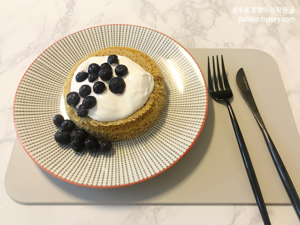 사워크림과도 조화가 좋습니다. 빵에 사워크림, 알룰로스와 블루베리까지 더하면 보통의 탄수화물 빵 생각은 잠시 잊을 수 있습니다. 만들기도 쉽고 맛도 생각보다 괜찮아서 만족스럽습니다.
