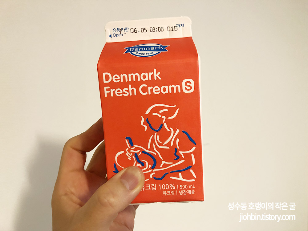 마트에서 데려온 생크림입니다. 어쩌다보니 이 제품도 덴마크 브랜드네요. 유통기한 넉넉한 놈으로 집어왔습니다. 가격은 5천원을 조금 넘습니다. 저렴한 가격은 아닙니다만, 밖에서 사먹는 까르보나라 파스타 가격이나 생크림 케익 가격 생각하면 착하게 봐 줄 수 있습니다.