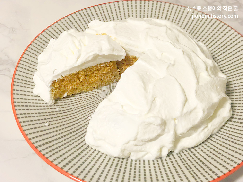 크림 듬뿍 생크림 케이크를 신나게 흡입했습니다. 시나몬 향을 좋아한다면 90초빵 반죽에 시나몬 파우더를 살짝 넣어 주셔도 되고, 시나몬을 좋아하지 않으시는 분들이라면 레몬즙이나 바닐라 익스트랙을 넣어도 좋을 것 같습니다.